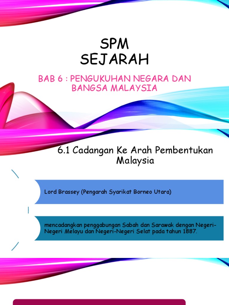 Cadangan ke arah pembentukan malaysia. Proses perbincangan dan perundingan ke arah pembentukan malaysia ini sebenarnya sangat kompleks. 1 faktor politik ● lee kuan yew minat bergabung dengan malaysia kerana pengaruh. Tahun _ gabungan sabah dan sarawak nyatakan sebab tunku abdul rahman tidak bersetuju dengan cadangan lee kuan yew terhadap pembentukan malaysia ? Pengukuhan negara dan bangsa malaysia.