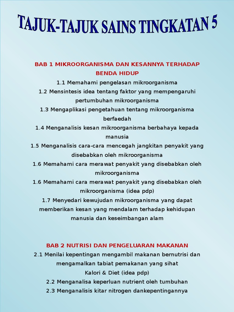 All About Science Cikgu Diana Tips Untuk Menghafal Sains Spm Terkini from 2.bp.blogspot.com Kuiz sains tingkatan 2 bab 5. Bab 2 nutrisi nutrition kepentingan mengambil pemakanan yang baik dan mengamalkan tabiat pemakanan yang seimbang the importance of taking good nutrition and practising good eating habits bab 3 pemeliharaan dan pemuliharaan alam sekitar preservation and conservation of the environment keseimbangan alam balance of nature. Di akhir pembelajaran, pelajar dapat: Sistem badan saya bab 2 : 5.1.2 membanding dan membezakan mitosis dan meiosis. Bab 2 nutrisi dan teknologi makanan. Sains tingkatan 5 bab 2 kitar nitrogen. Sains sukan tingkatan 5 menu keluar.